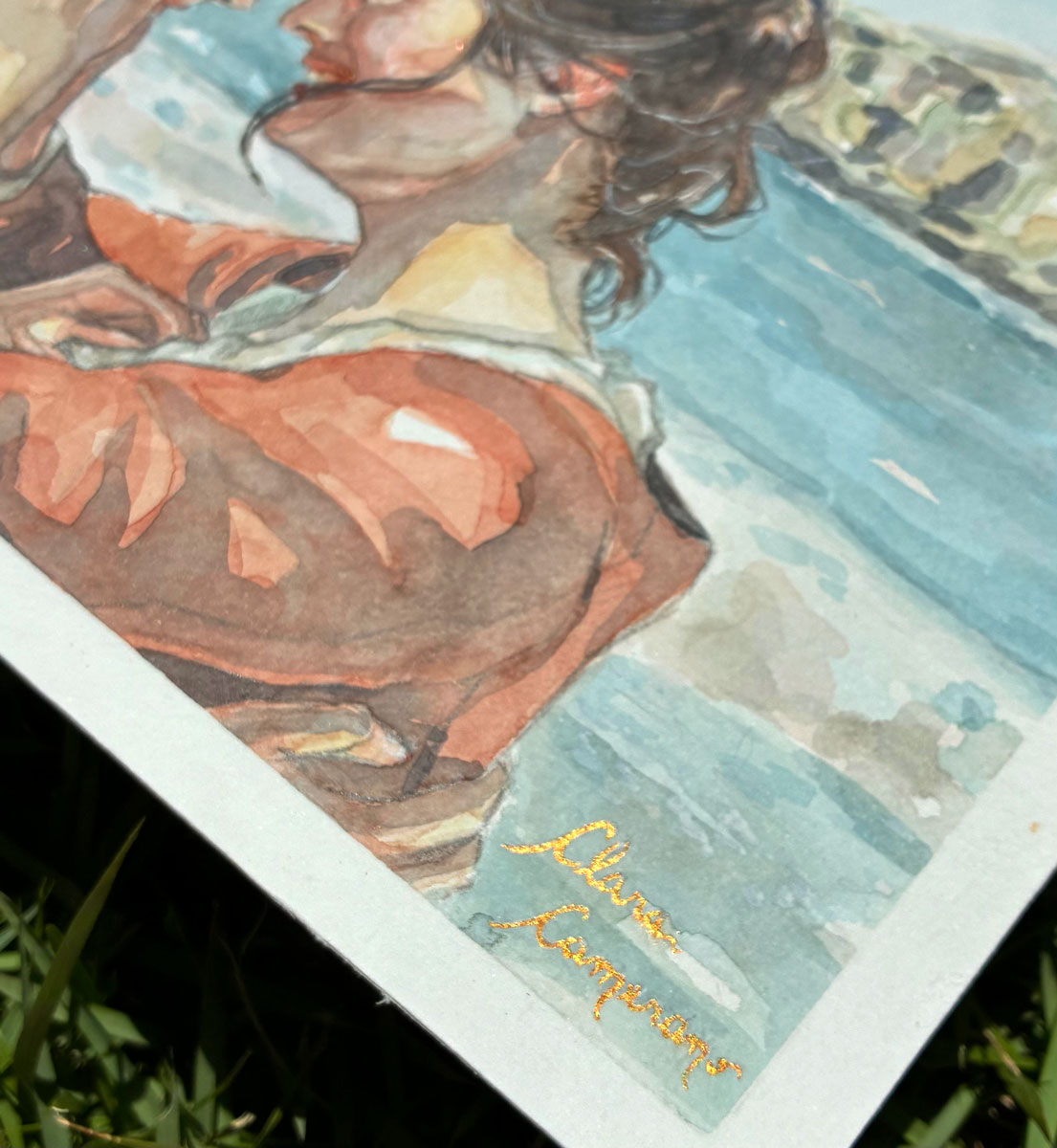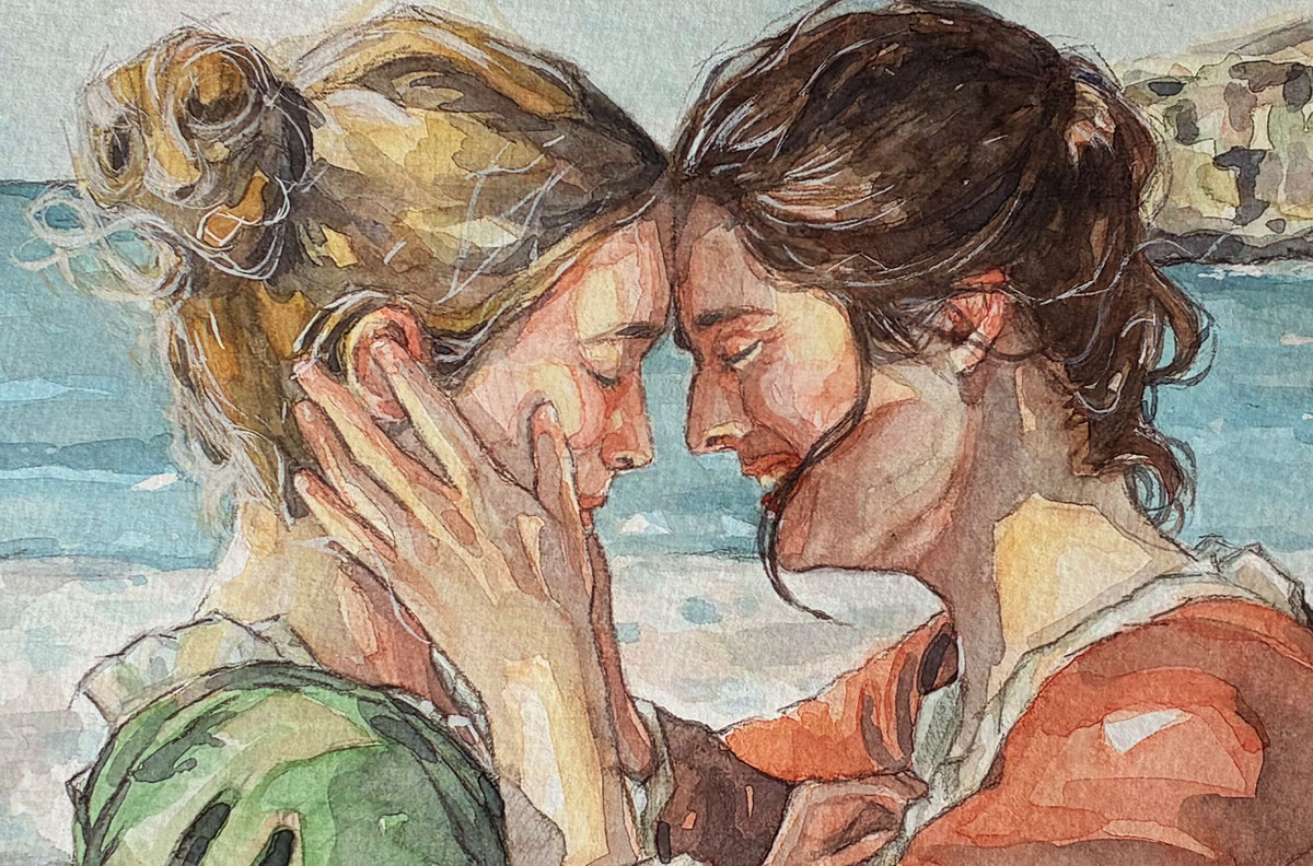 Aquarela sobre papel celulose 300g/m². Fanart do filme Retrato de uma Jovem em Chamas, de Céline Sciamma.